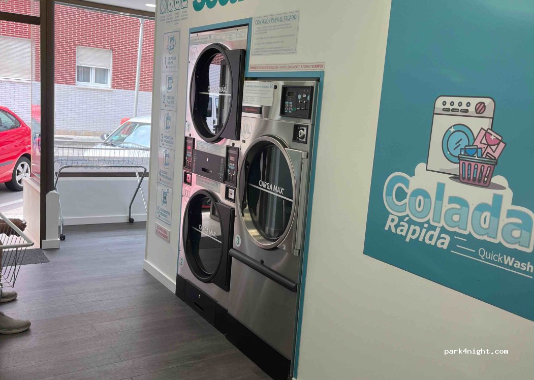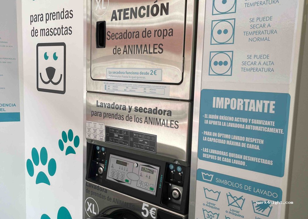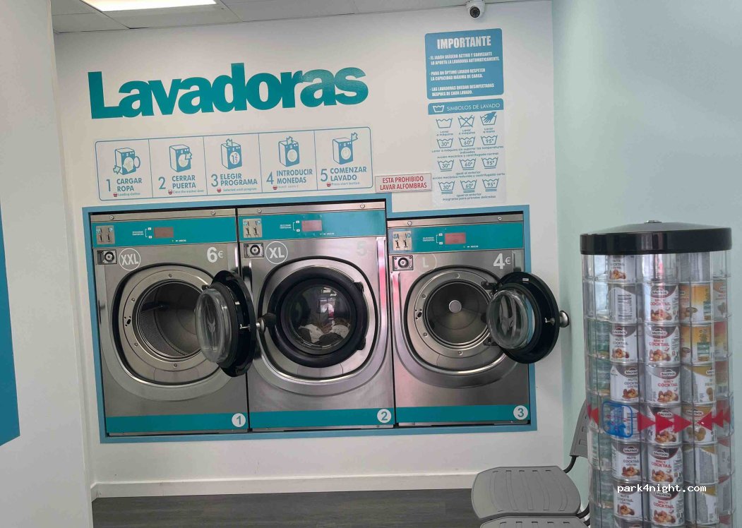 Full laundry with washing and drying machines of three different sizes and large capacity as well as washer and dryer for pet clothes. Very clean and with a parking lot next to it where you can leave the motorhome while you are doing laundry, next to a small shady garden where you can be with your dog. Very close to the highway. Comfort and cleanliness.