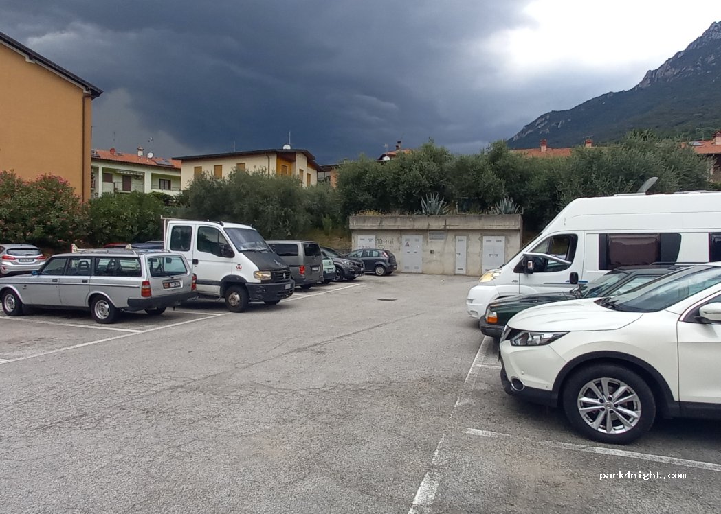 Pratique à 5min de la plage, même grand camping car. nous ne sommes pas restés pour la nuit car nous avions de la route pour bergamo,mais aucune interdiction