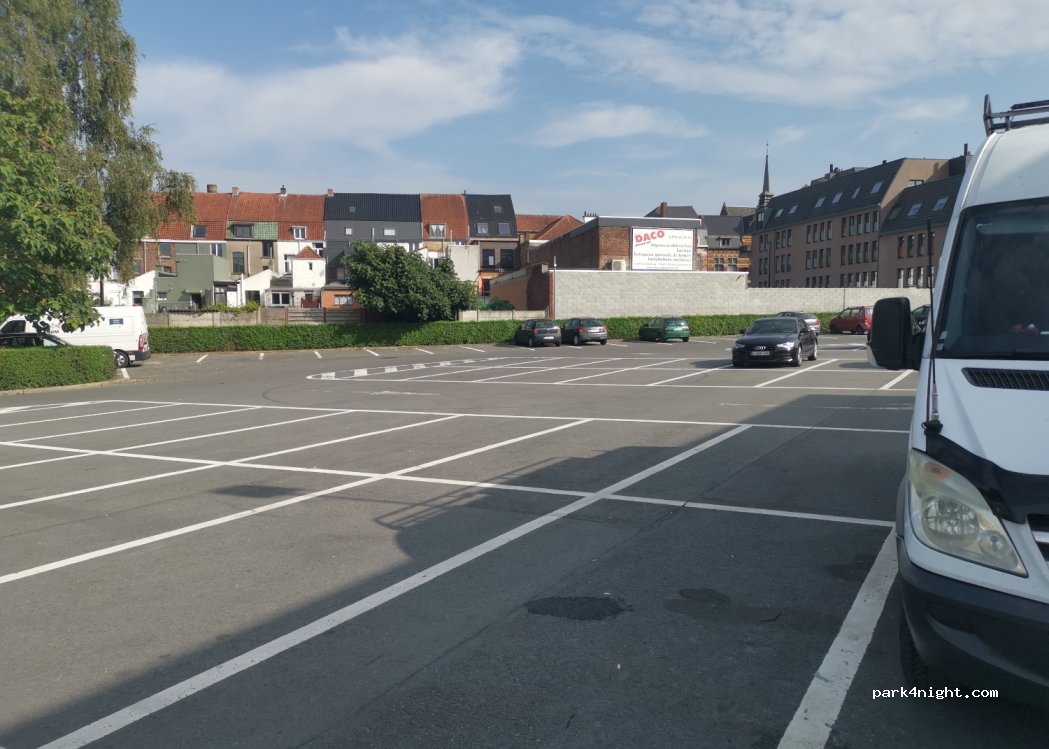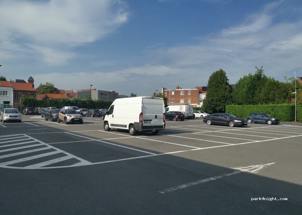 Wel gratis parkeren. Overnachten wordt door de toeristische dient afgeraden. Wij werden verwezen naar Sporthal 't Rosco, Leuzesteenweg 241. Daar is heel veel plaats, kan je veilig en rustig overnachten en er 7/7 gebruik maken van de toiletten.