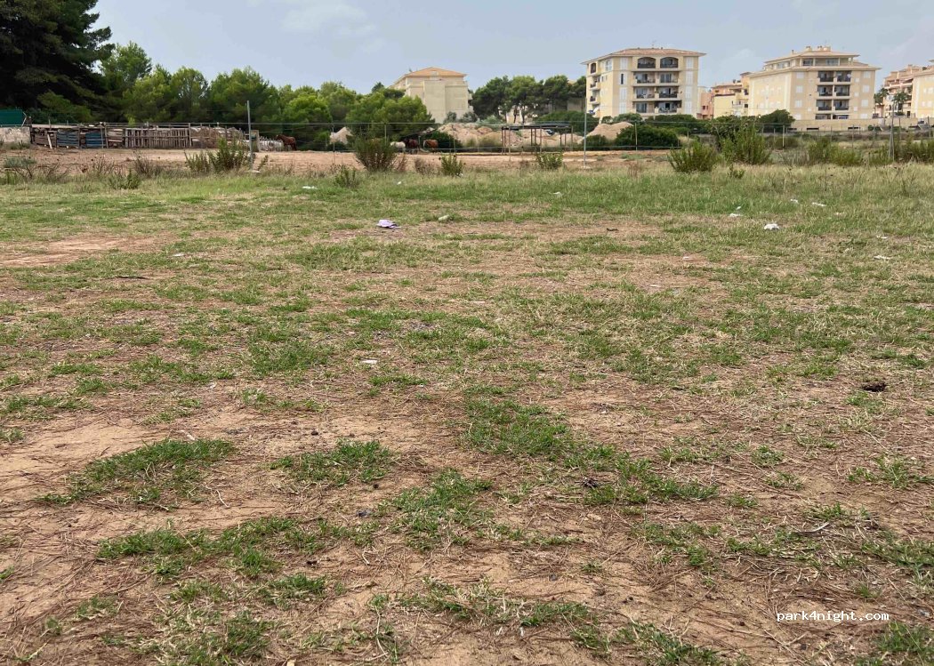 Kostenloser großer unbefestigter Parkplatz, viele Parkplätze, jedoch wenig Schatten. Ganz und gar, wenn auch in der Nähe einer Straße.