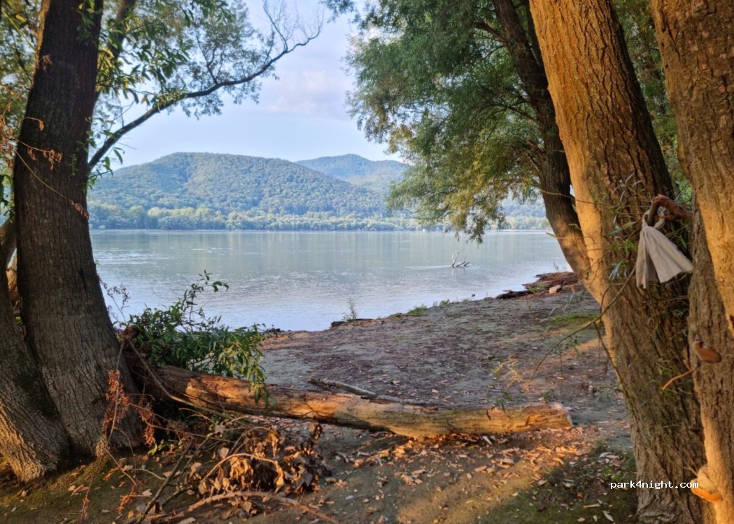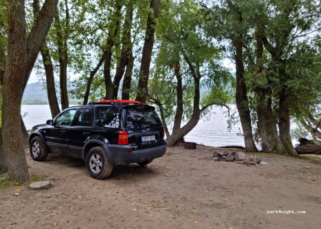 Bel endroit pour deux véhicules à l'ombre sous les arbres, directement au bord de l'eau. Il n'y a pas de services, juste une cheminée. Une plage de sable se trouve à 50 mètres. L'endroit est accessible par un chemin de terre assez raide, le 4x4 n'est pas obligatoire, mais peut être difficile avec un camping-car ou un camping-car. D'autant plus que le chemin entre les arbres est assez étroit.