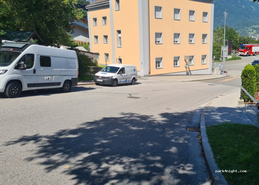 3 freie Plätze entlang der Straße, kurz vor der Kurve, die zum gebührenpflichtigen Parkplatz führt.