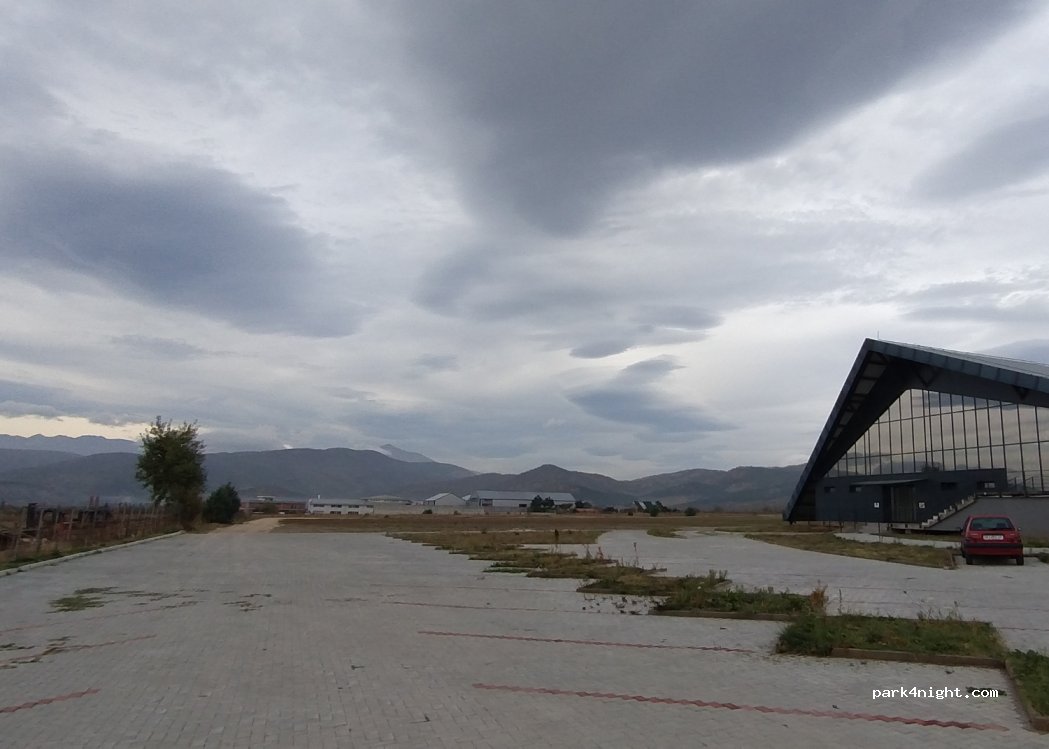 Parking next to an airport of sports aircraft. Very clean sanitary facilities, the shower is a bit dated. In 20 minutes you can drive to Skopje and it takes a little longer to Market Canyon. The employee is very friendly and helpful. He speaks English.