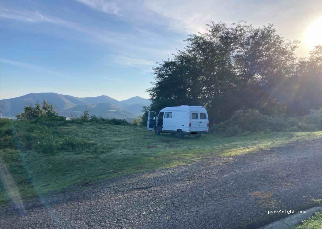 Magnifique spot. Nous y avons passé une seule nuit. On y serait bien resté plus longtemps… Nous étions seuls sur les hauteurs des montagnes avec un coucher de soleil magnifique. Un petit peu de vent, la nuit mais qui s’est arrêté et le matin au réveil, vue sur ses magnifiques montagnes, le lever du soleil. Des petits pottok et le son des cloches avec les vaches, une pure merveille.