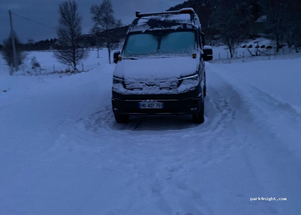 Nouveau parking pour environ 5/6 camping car. Sur gravier, face au lac, proche route tranquille la nuit. Aucun service. Restaurant fermé. Parfait pour une halte, d’autant que les autres endroits sont très prisés.
