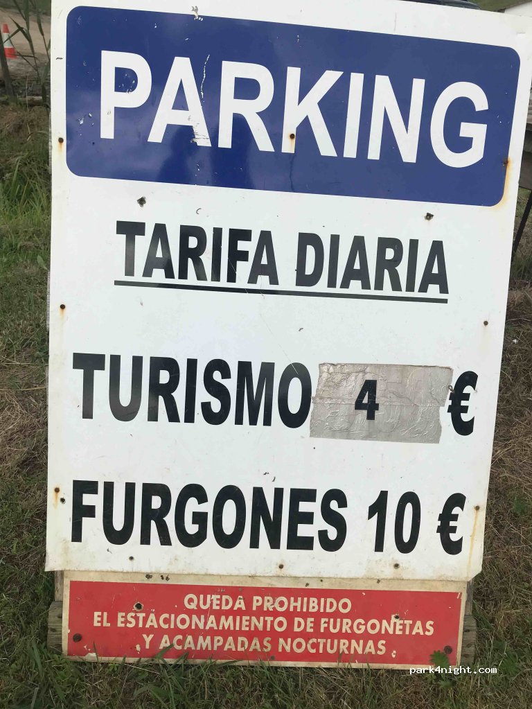 Me parece una pasada que te cobren 10e para poder aparcar para ir a la playa. Te sale rentable si te vas a pasar el día a la playa y luego quieres comer en la autocaravana. Eso si, el fin de semana que hace bueno es el único parking de la zona que vas a encontrar sitio de sobra. El parking que hay un poco más arriba que pertenece a una escuela de surf son 6e, lo que pasa es que es más pequeño.