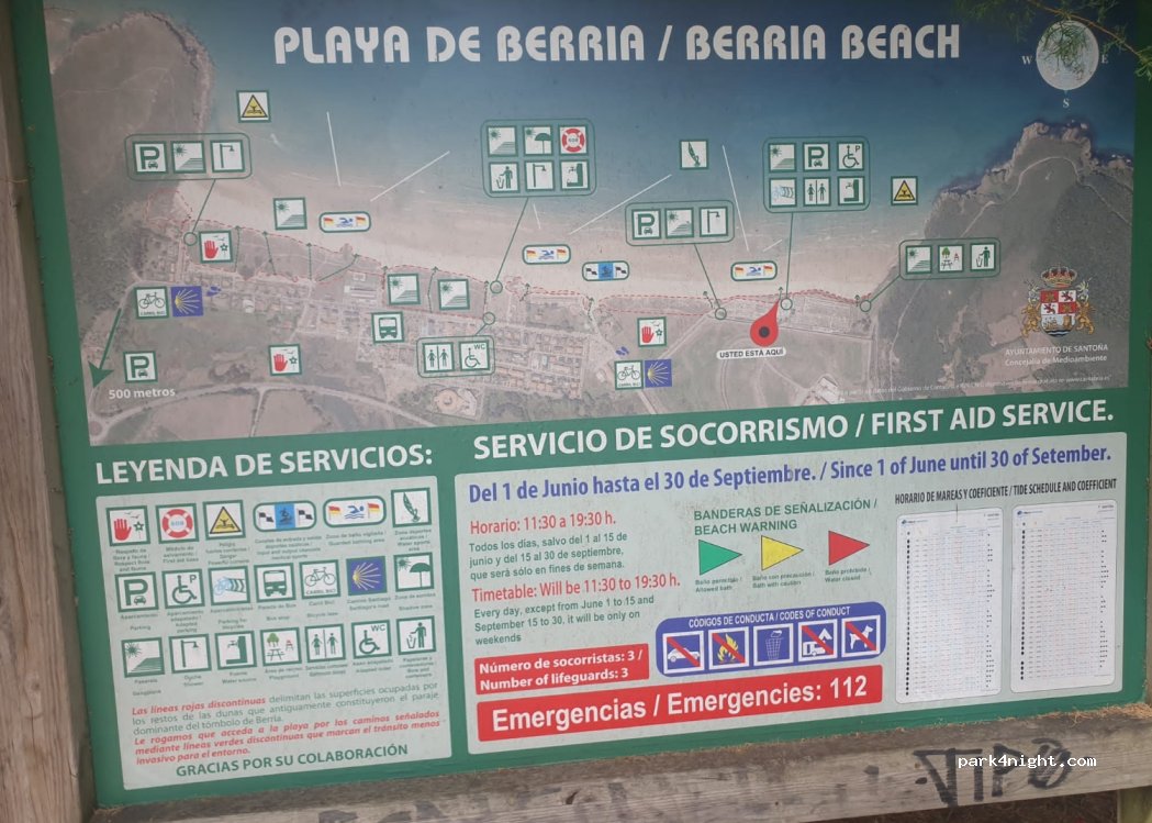 Parking de autocaravanas de estacionamiento para caravanas y autocaravanas vigilada las 24 horas mediante vídeo vigilancia y vigilante. Cuenta con 42 plazas de una superficie aproximada de 25m2 cada una de ellas. Todas las plazas poseen toma eléctrica. También se ofrece toma de agua potable, punto de descarga de aguas grises y negras. Contenedores de basura (residuos urbanos, plásticos, papel y cartón).
