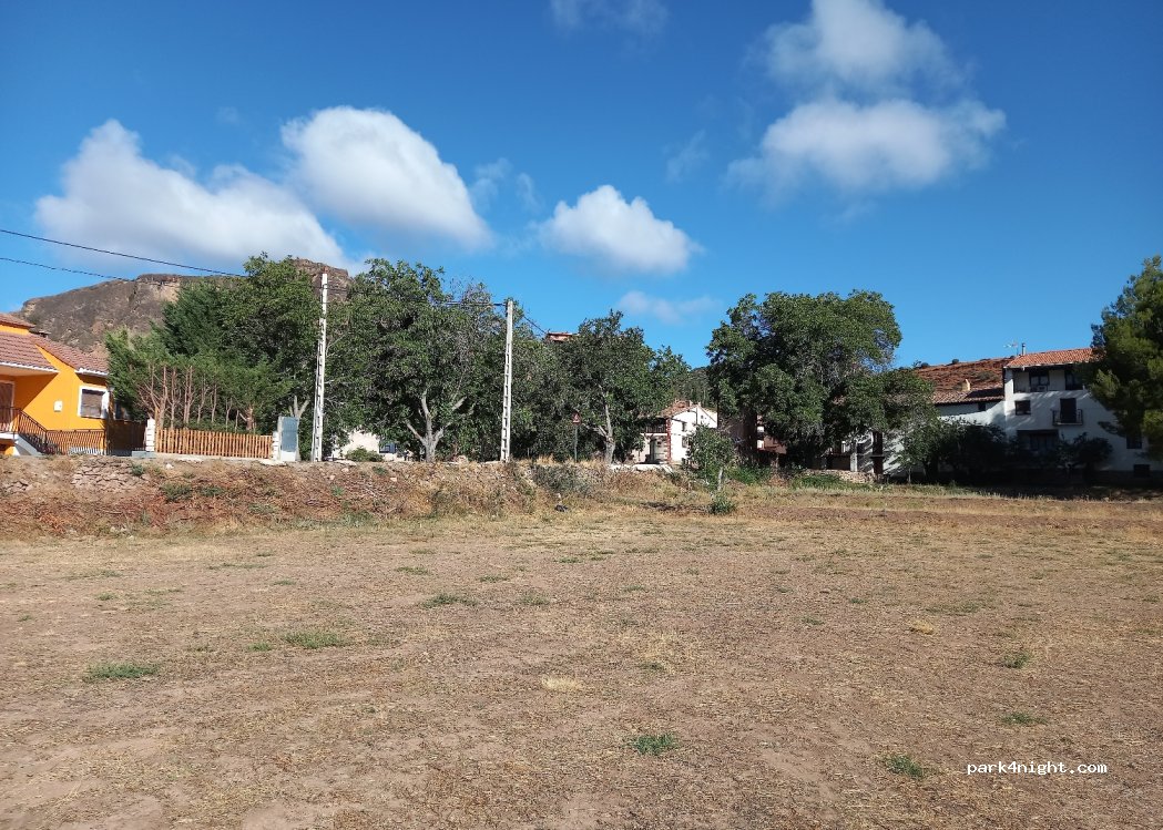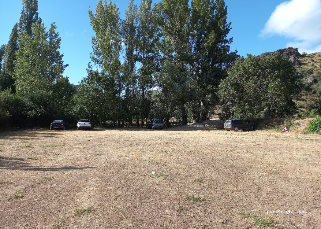 Parking tranquilo, no está señalizado como Parking por lo que es difícil de encontrar. A la salida del pueblo en la carretera de Villar del Cobo, justo antes de pasar el río a mano izquierda. Los accesos y la explanada pueden ser complicados en caso de lluvia.