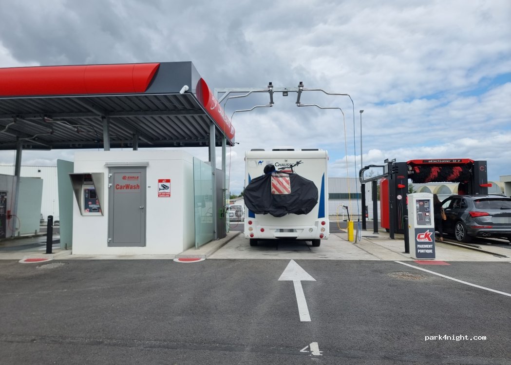 Je suis tombé par hasard sur cette station de lavage toute récente. Pendant que je lavais mon camping-car, le propriétaire est passé et m'a dit qu'il est en train de consulter des fournisseurs pour ajouter une passerelle. Il m'a demandé quelle hauteur serait appropriée et nous avons eu un échange très fructueux sur les besoins des camping-caristes. Il devrait donc bientôt y avoir une passerelle.