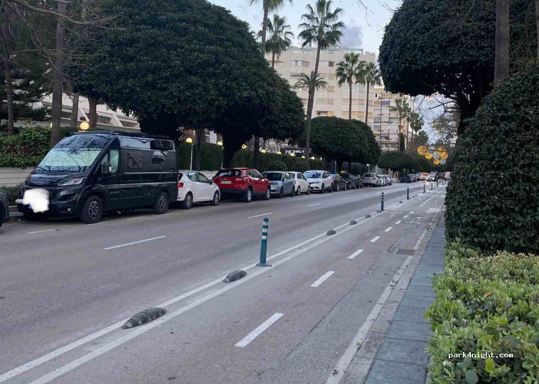 We spent 3 nights without any problems (07-10.01) little bit further down in front of Supercor supermarket. Super close to the beach and short walk to old town. There’s water fountain on the corner.