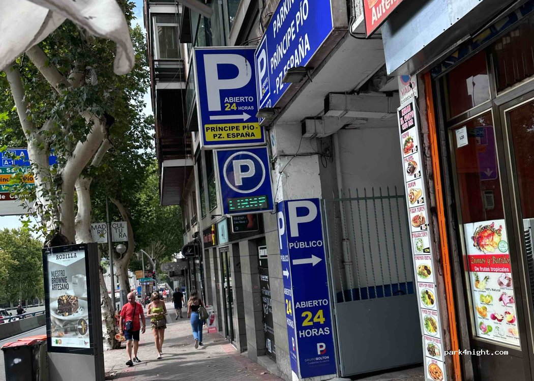 A car park with a perfect location in Madrid. Important to know, if you reserve online 2 hours earlier, it costs less.