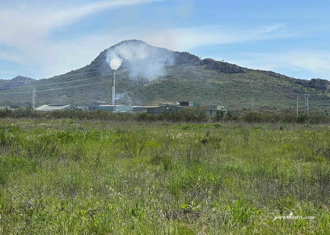 Un parc industriel sans industrie (il n'y en a qu'un que vous pouvez voir sur l'image satellite). Rien n’indique que c’est interdit. Cela semble plutôt silencieux. L'autoroute est à proximité mais pas très bruyante. Et les lampadaires ne s'allument pas la nuit. Je me sentais très en sécurité pour dormir ici