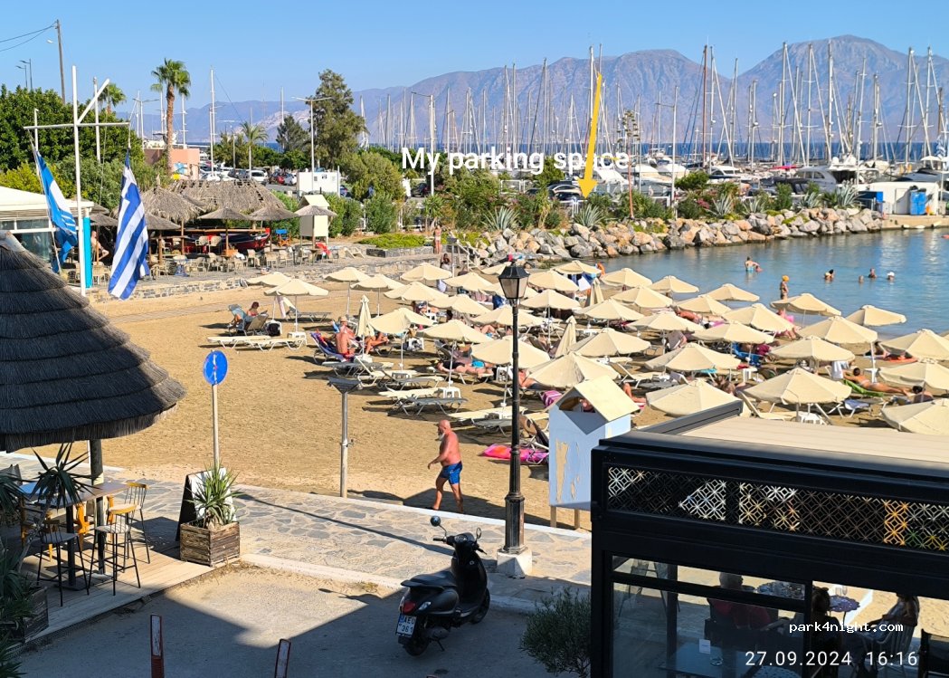 Tipp: Vormittags früh dort ankommen, dann ist möglicherweise ein Platz frei. Plätze geeignet bis 6 m. Zumindest am Wochenende (Freitag) hatten wir griechische Live-Musik vom naheliegenden Strand.