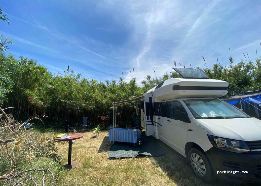 This is our first camping trip, and we are putting our newly built campervan to the test. The nature here is phenomenal. The campsite is located on a farm near a freshwater creek. We are at the westernmost point of Turkiye. One can easily see the Greek island Lesvos-Midilli. The camp's owner, Bahri Bey, and his family are friendly and accommodating, assisting us with all of our needs. As inexperienced campers, our camping table was broken. Bahri Bey and his son kindly provided us with a camping table. The camp had basic amenities like toilets, closed showers, a kitchen, and a charming little cafe by the sea. We will definitely return, and I am confident that Bahri Bey and his family will finish the missing pieces throughout the camp.