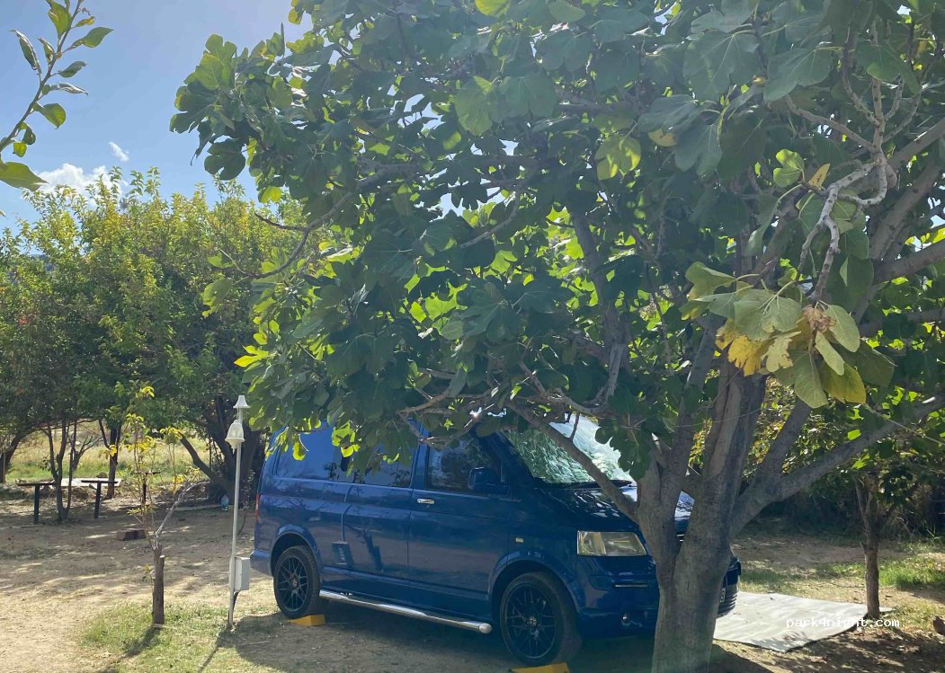 C'est notre premier voyage de camping et nous mettons à l'épreuve notre camping-car nouvellement construit. La nature ici est phénoménale. Le camping est situé dans une ferme à proximité d'un ruisseau d'eau douce. Nous sommes au point le plus occidental de Turkiye. On aperçoit facilement l'île grecque de Lesbos-Midilli. Le propriétaire du camp, Bahri Bey, et sa famille sont sympathiques et arrangeants, nous aidant pour tous nos besoins. En tant que campeurs inexpérimentés, notre table de camping était cassée. Bahri Bey et son fils nous ont gentiment mis à disposition une table de camping. Le camp disposait d'équipements de base comme des toilettes, des douches fermées, une cuisine et un charmant petit café en bord de mer. Nous reviendrons certainement et je suis convaincu que Bahri Bey et sa famille termineront les pièces manquantes tout au long du camp.
