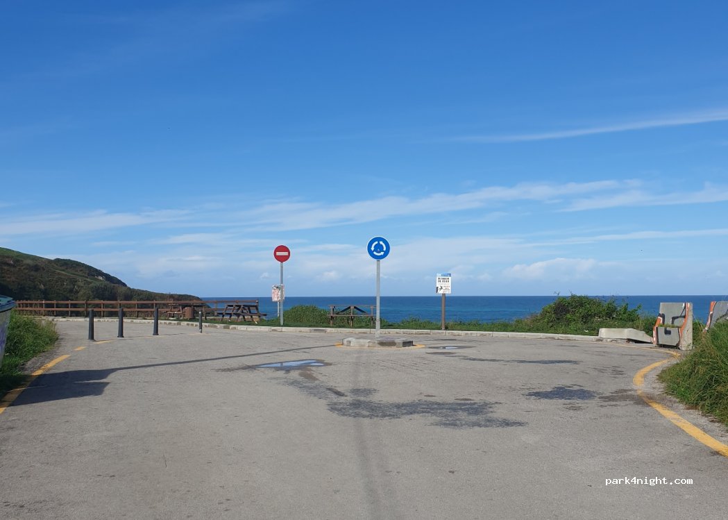 Grand parking sans commodités, aucune barrière de hauteur, la vue n'offre pas un paysage époustouflant. Cela reste un simple parking de gravier, bien pour une nuit. La plage est à 5 minutes à pied et vous trouverez également quelques randonnées alentour.