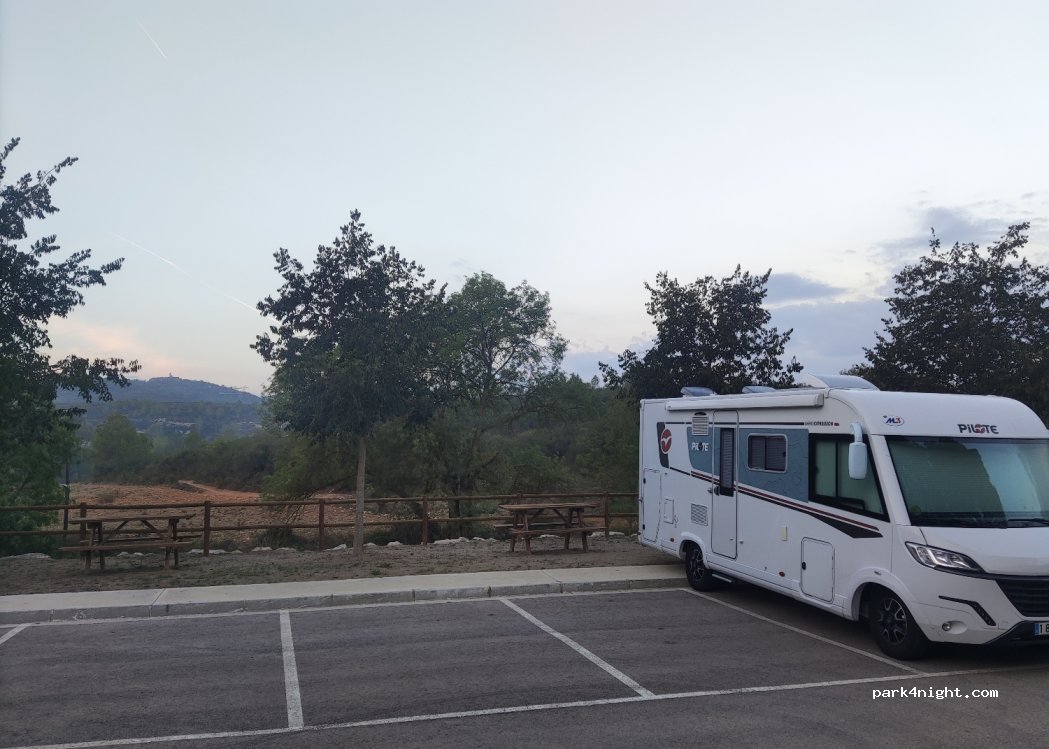 6 parking spaces next to the Olerdola park, ideal for one night and with the beginning of several hiking routes, a fountain and picnic areas next to the parking lot.