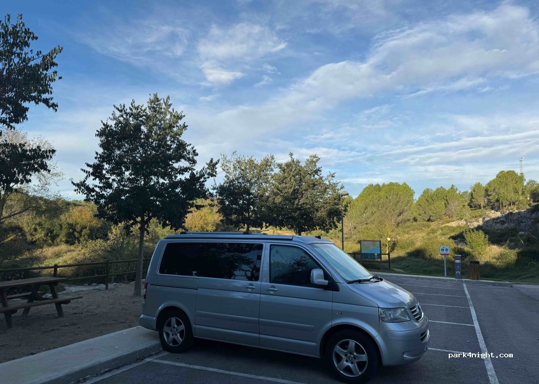 6 aparcamientos junto al parque de Olerdola, ideal para una noche y con el inicio de varias rutas de senderismo, fuente y zonas de picnic junto al aparcamiento.