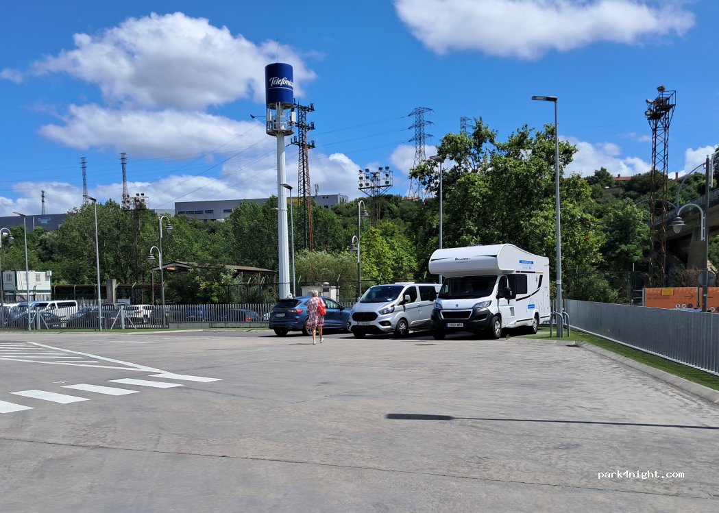Bonjour ,parking du Lidl ,pratique pour les courses et on a laissé notre Van sur place, bouche de métro juste à côté, 5 mn pour vous rendre au centre de la vieille ville. Super pour flâner et manger des tapas. Sortie Métro Casca Viejo. Endroit sur avec les vélos à l'arrière. Bonne ballade.