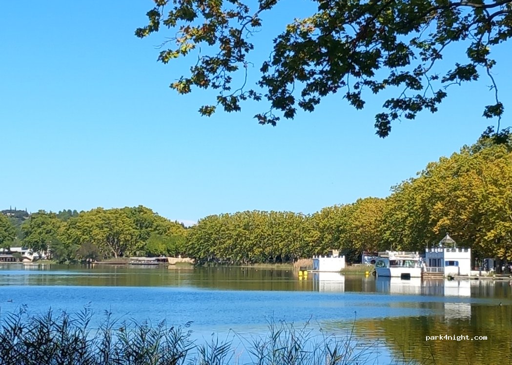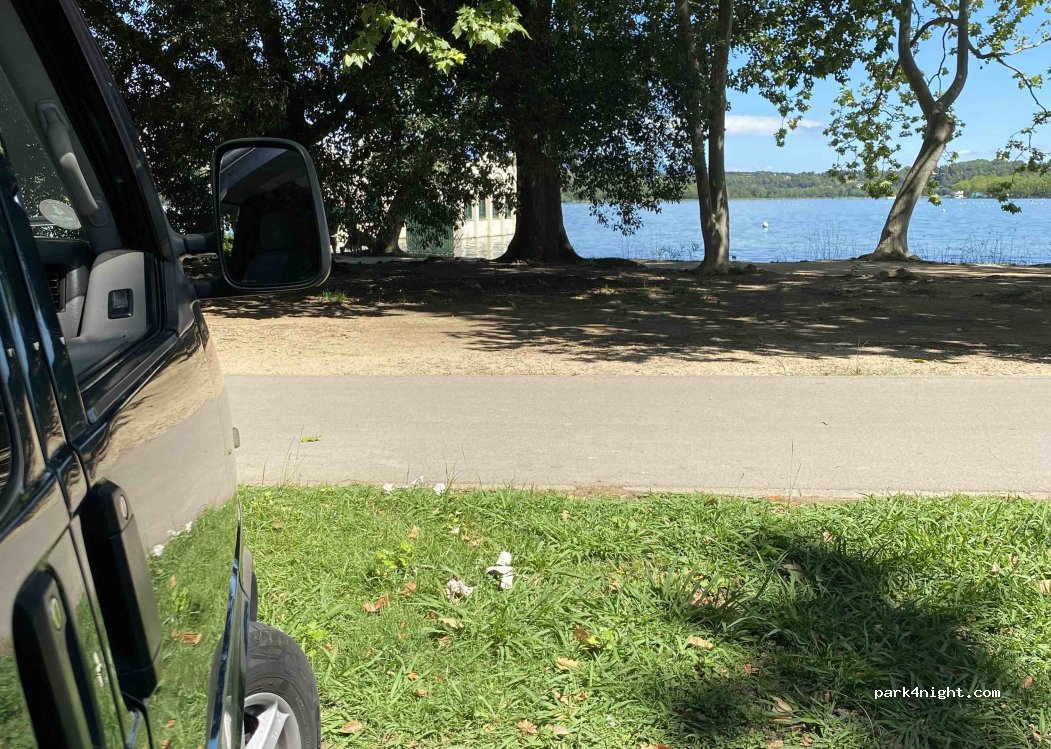 Bonito sítio al lado del lago y con sombra. Muchos restaurantes, ruta para caminar y de bici. Sin servicios, solo parking. Poco estrecho para AC larga. Mejor en las paralelos.