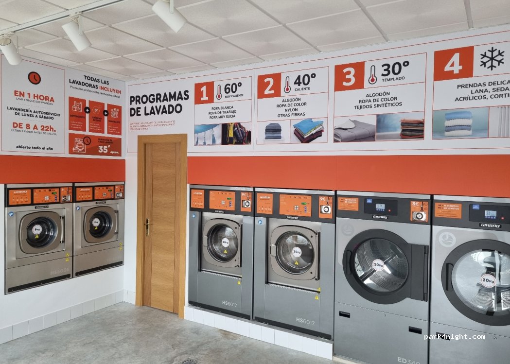 Lavandería de autoservicio ideal para lavar la ropa en poco más de 30 minutos. Dispone de aparcamiento gratuito con unas 50 plazas. En la misma zona hay restaurantes, talleres y un supermercado.