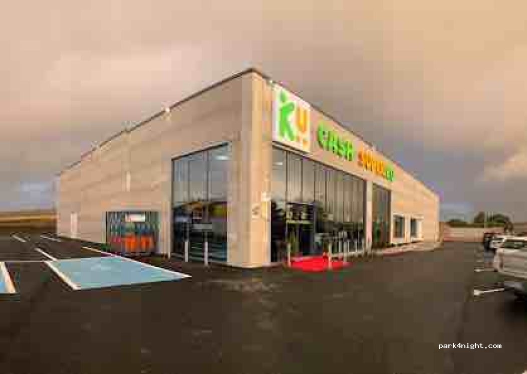 Parkin en la entrada del pueblo . Supermercado para comprar . pasamos una buena noche y tranquila. tienen luz en el parking y cámara afuera cerca de la entrada del super por la mañana aprovechamos compramos comida y lavamos nuestra auto. Gracias