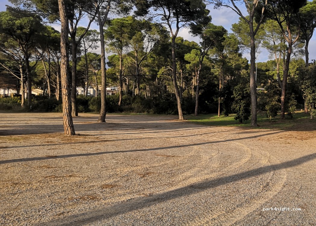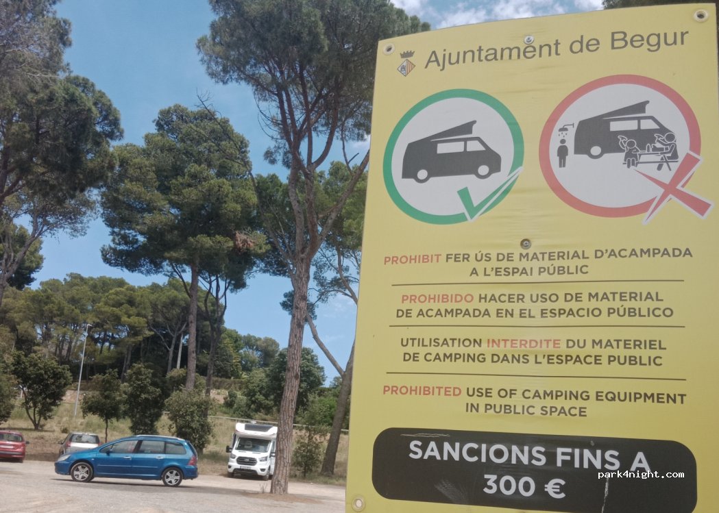 Ce parking se trouve à proximité du supermarché Jodofi et du camping Begur. C'est gratuit, il y a du soleil et de l'ombre (beaucoup d'arbres).
