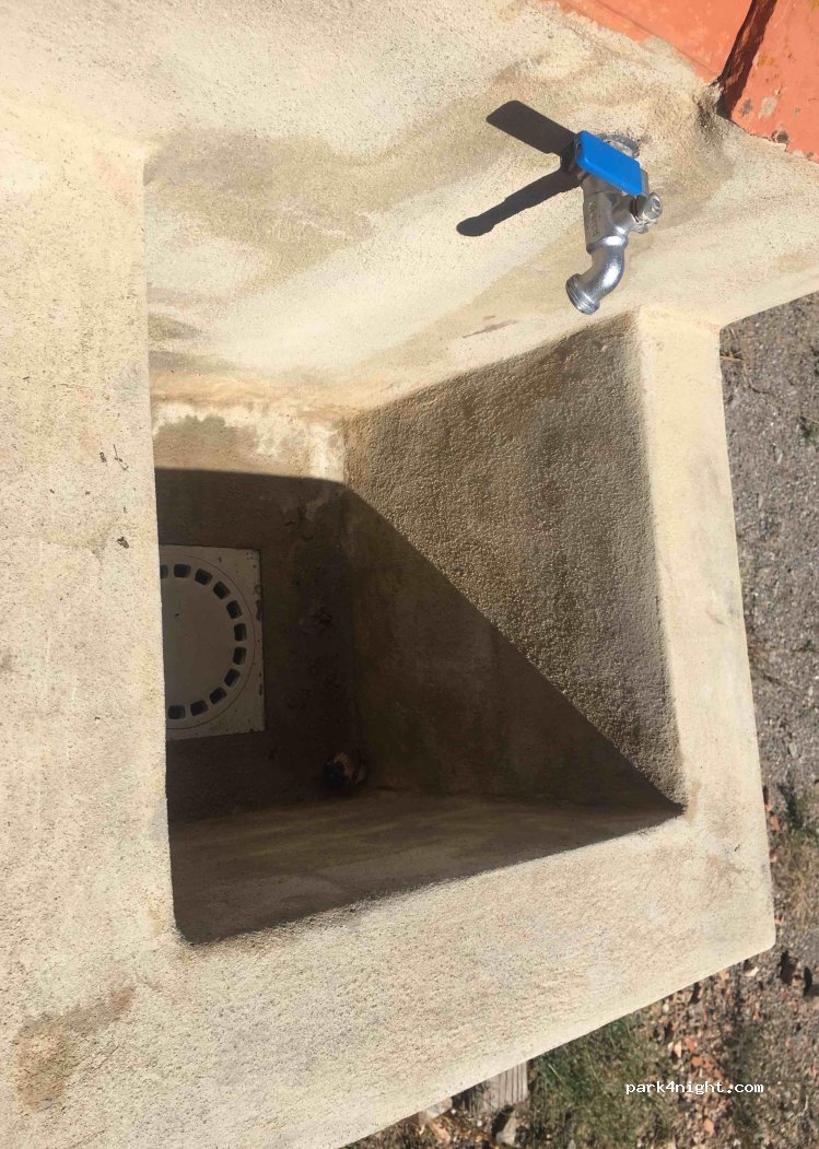 Area súper recomendable. Se encuentra en obras pero se puede vaciar agua grises y negras, coger agua y tirar basura. Se pueden ver las estrellas por la noche. Al lado del pueblo.