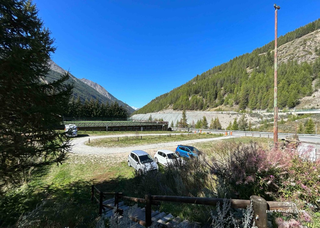 Parking mixte avec voitures et signalé uniquement de jour (8/20). Sur terre battue mêlée d'herbe légèrement pentue. Non éclairé. Accepte les paiements par cartes électroniques, billets et pièces.