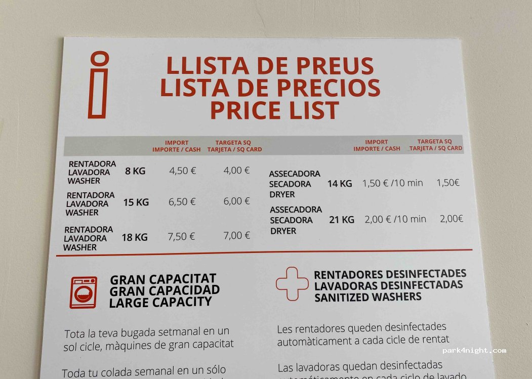 Speed Queen self-service laundry. 2 washing machines of 8kg, 2 of 15kg and 2 of 18kg; 4 dryers of 14kg and 2 of 21kg. Large premises and possibility of parking along the same street, although a little busy.
