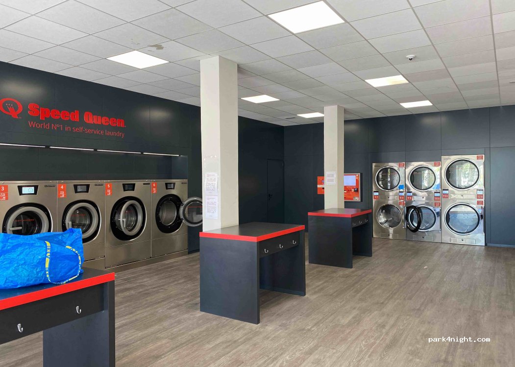 Die Wäscherei befindet sich zwischen dem Asia Geschäft und dem Restaurant auf der anderen Seite. Das Geschäft ist sehr sauber. Die Maschine wäscht 30 Minuten und das Ergebnis ist gut. Der Trockner benötigt 2 mal 10min zum Durchtrocknen bei 80 Grad( 4 Euro). Parkplätze befinden sich in der Nähe. Wir würden wieder hierher kommen.