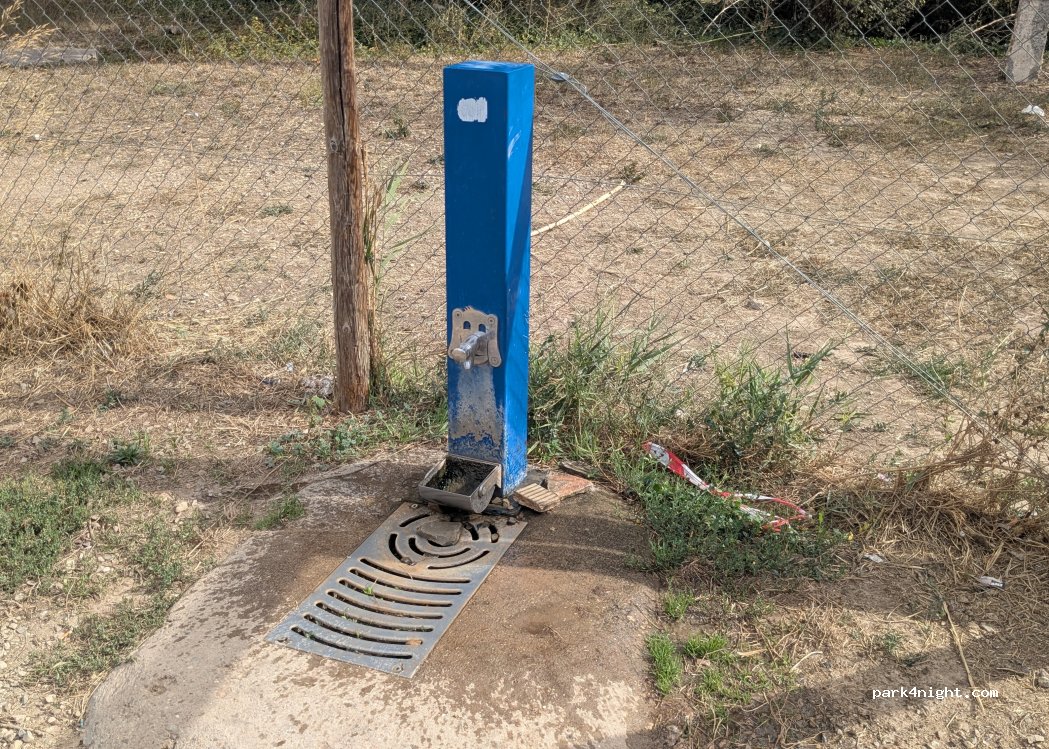 prima als lunchplek. het hondenveld is niet bijzonder, ik zou er niet voor omrijden. bij het picknickgebied ernaast is een drinkfontein (geen schroefdraad). wij hebben water gevuld bij de camperplaats iets verderop, aan de andere kant van het zwembad.