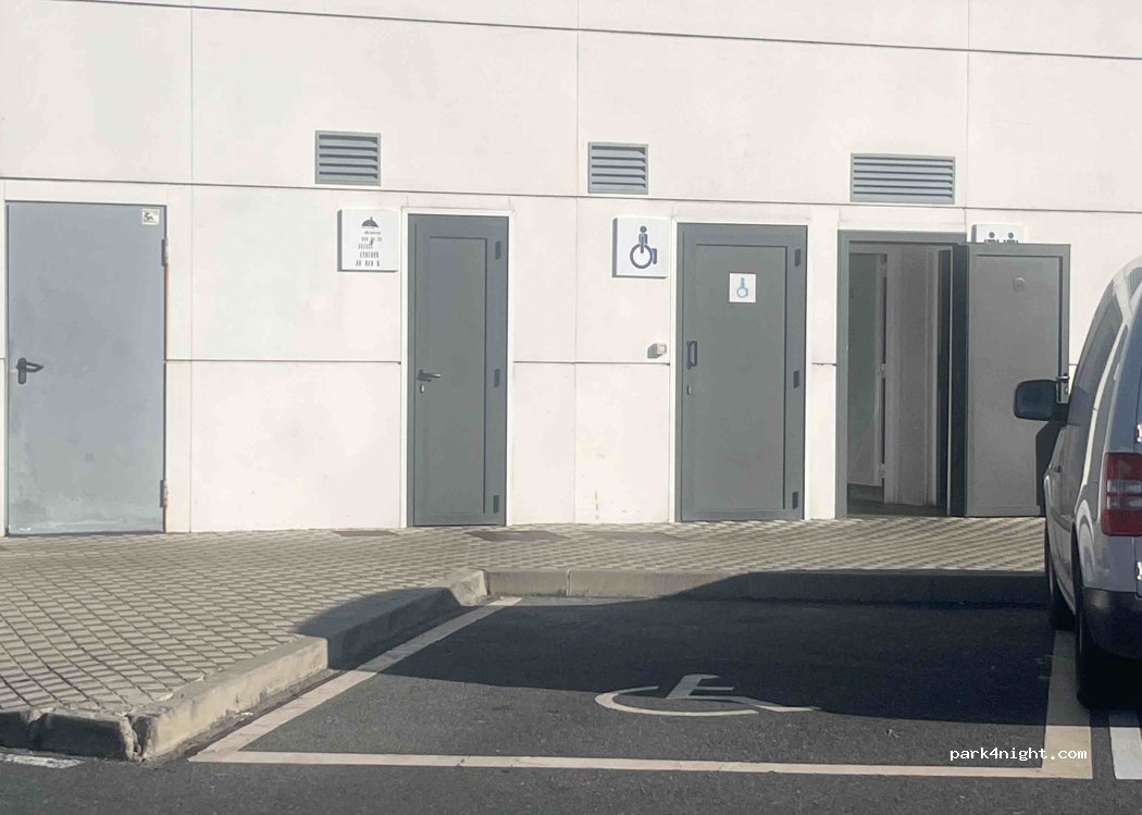 très peu de place de stationnement. très proche de la route. emplacement petit. toilettes pas nettoyées. c'est un défilé incessant toute la nuit de véhicules qui font des haltes pour dormir quelques instants et repartir.