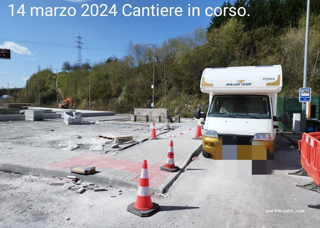 Ci siamo fermati solo per i servizi. È un fase di ristrutturazione,per cui non c'è possibilità di sosta, una volta superato il benzinaio. L'area di scarico è stata lasciata fuori dal cantiere ed è accessibile con qualche manovra precisa..Il rubinetto dell'acqua non è predisposto per l'attacco rapido e bisogna premere di continuo. Ci siamo arrangiati con una fascetta. Tutto gratuito al momento.