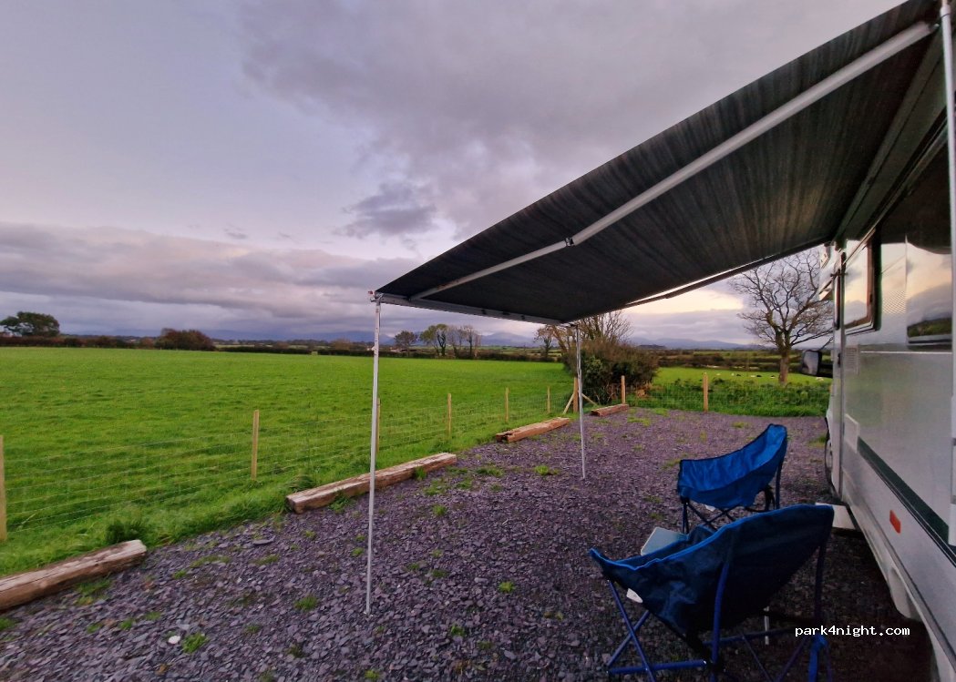 Lovely site with just 5 spaces. Surrounded by fields with views towards Snowdonia. Friendly owners, highly recommended