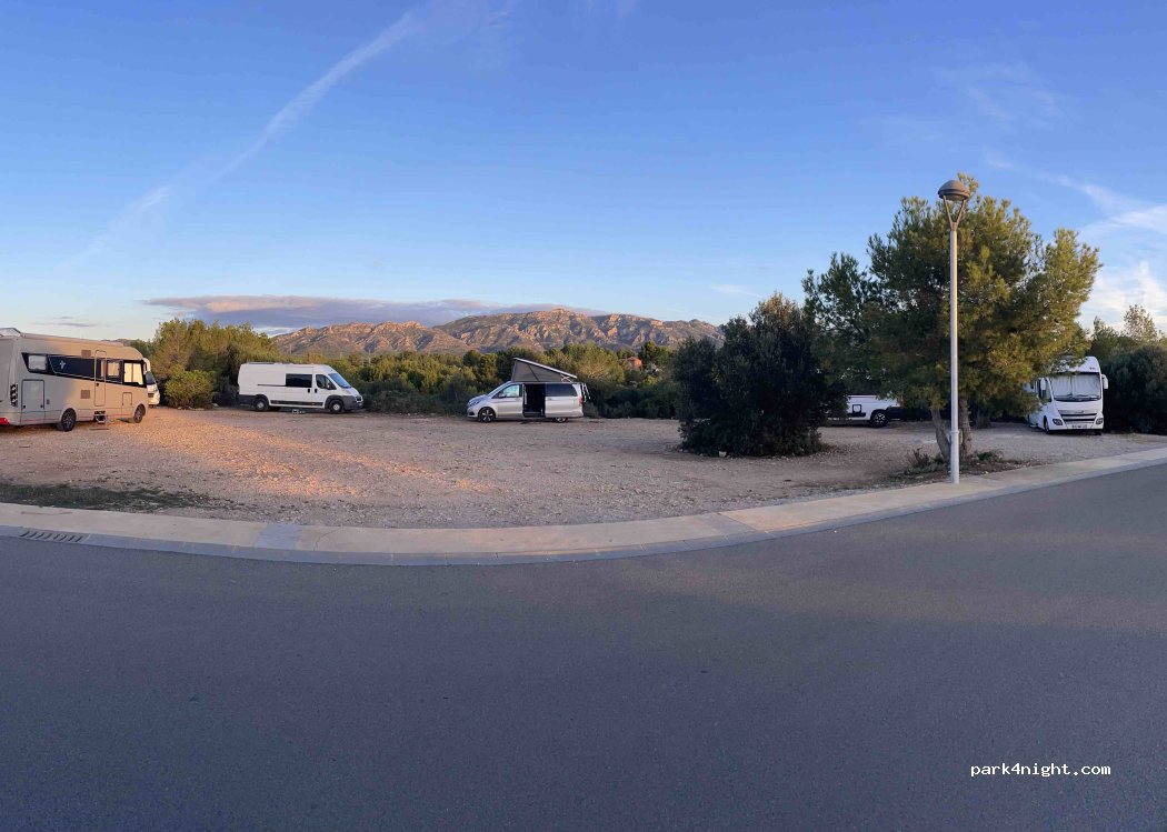 Attention maintenant il y a un panneau interdit de stationner entre 00h et 7h mais un peu plus haut il y a des places réservés aux camping car. Beaucoup de places libres en cette saison. Douche de plage à disposition, et poubelles de tri également. Jolie vue, belle promenade à faire. Attention aux nombreux nids de chenilles Il y a un supermarché à 10 minutes en voiture. Bon lieu pour se reposer