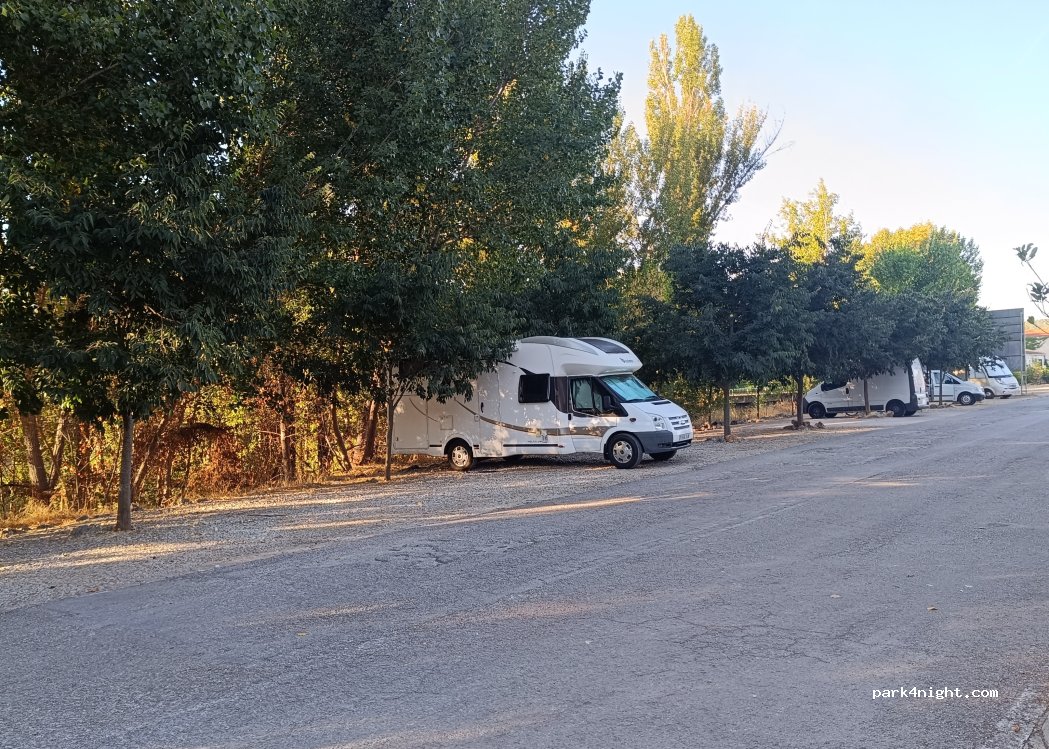 Sitio estupendo para pernoctar. Tranquilo y seguro. Con sombra y llanito. En frente hay un restaurante con terraza para tomar algo o comer.