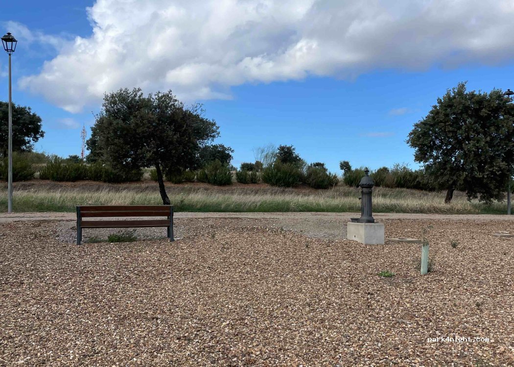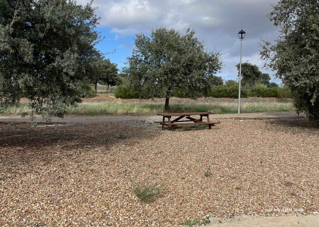 It is the entrance to an almost empty polygon. Next to the highway so there is noise, otherwise it is a quiet area, with plenty of parking. Next to it and further ahead (at the roundabout) there is a green area (ideal for dogs) with a picnic bench, also fountains but there is no water. To spend the night or part of the day being quiet 9 minutes from Mérida, perfect.