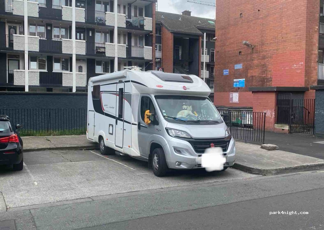 Great paid spot with less than 5 min walk to centre and 5 mins walk to St. Stephan’s green. There is traffic noise. Off peak times are free to stay though.