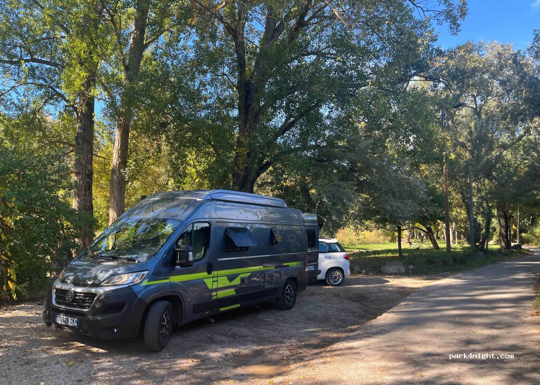 Ten minutes from the center of Aix en Provence, at the end of a path after the parking lot limited in height, one or two spaces maximum for van and camper van before the private road where parking is prohibited. Place surrounded by nature on the banks of a river…