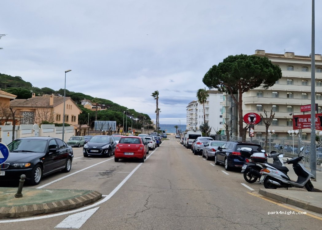 We parked on the parking lot which was slightly sloping but nothing major. All parking meters are covered up (out of season) stating “gratis free” during winter months. Police car passed simply observing and we had a very quiet night. We walked the coastal path into Lloret ( fantastic scenery ) which took around 30 mins. We had a nice lunch in Lloret on the front and would definitely recommend for one night ..