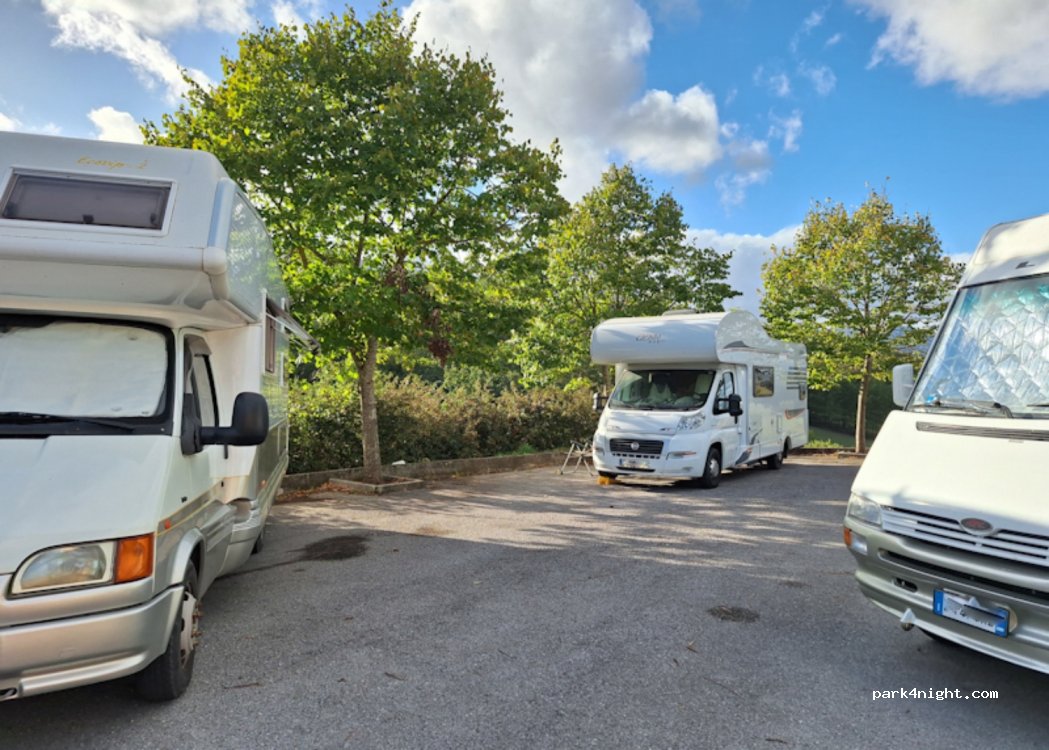 The town of Tramutola has set up this place for Camper for the chestnut fair that takes place at the end of October. During the rest of the year it is a quiet parking lot just a few minutes from the center. Recommendable.