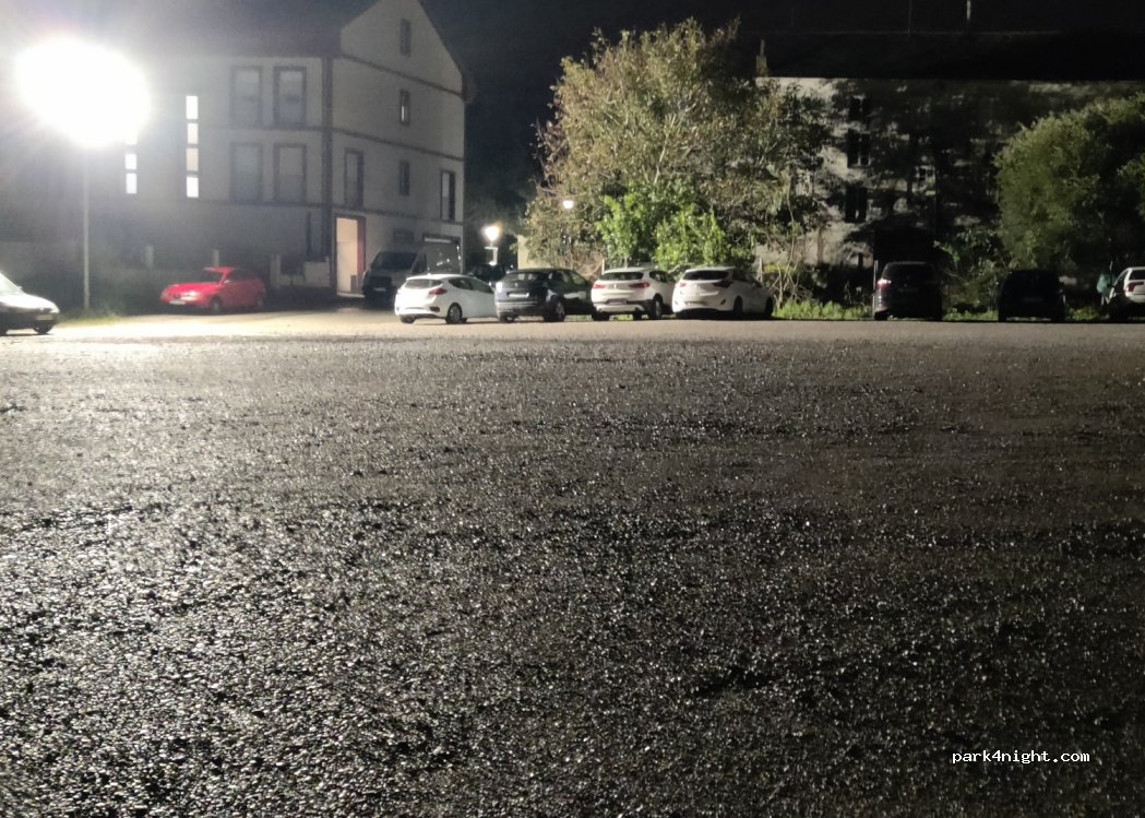Schotterparkplatz, sehr ruhig und sicher zum Übernachten. Einige Punkte sind gut nivelliert