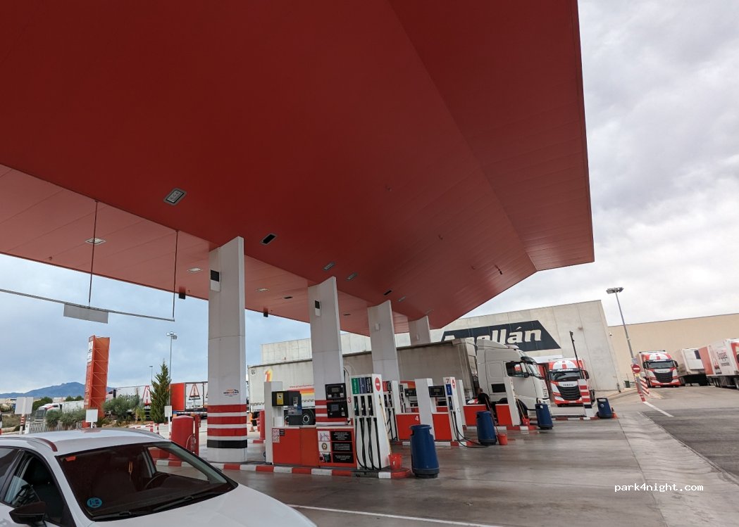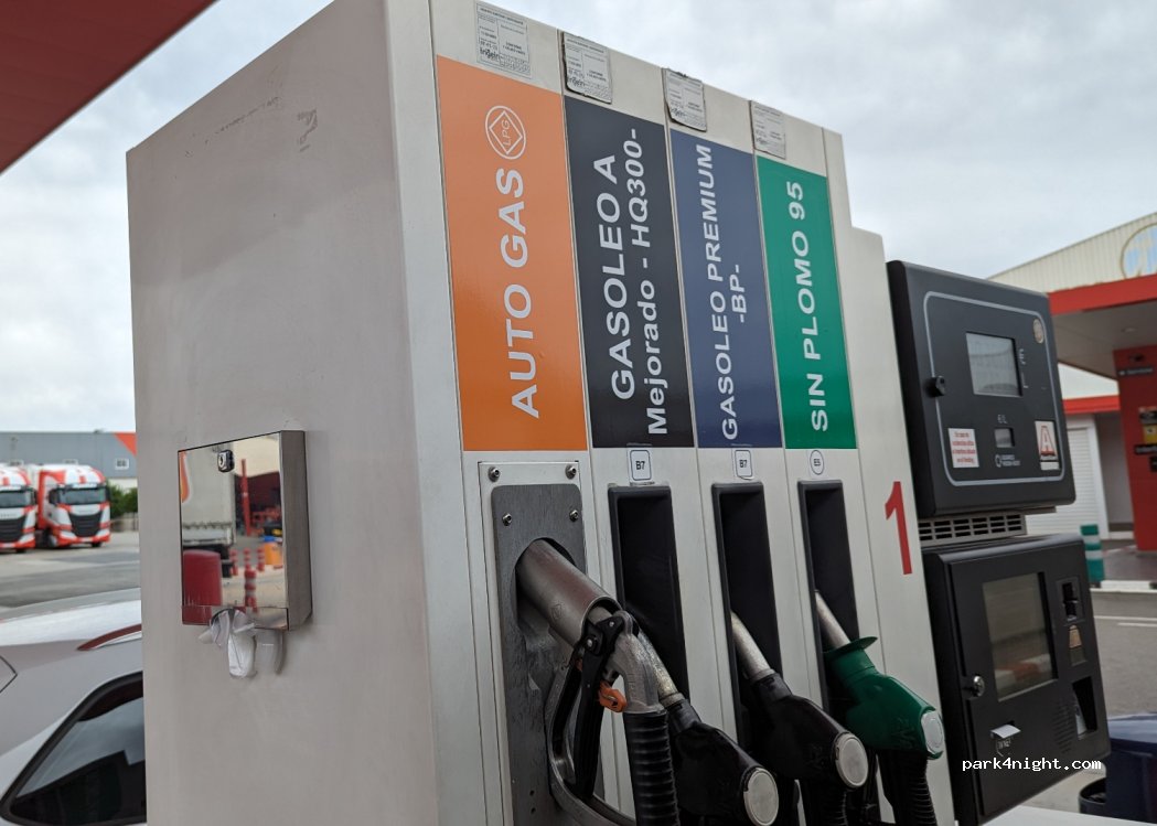 Easy to access for all sized vans or motorhomes. Exactly as the photo shows. LPG (GPL) is on the right side as you drive in.
