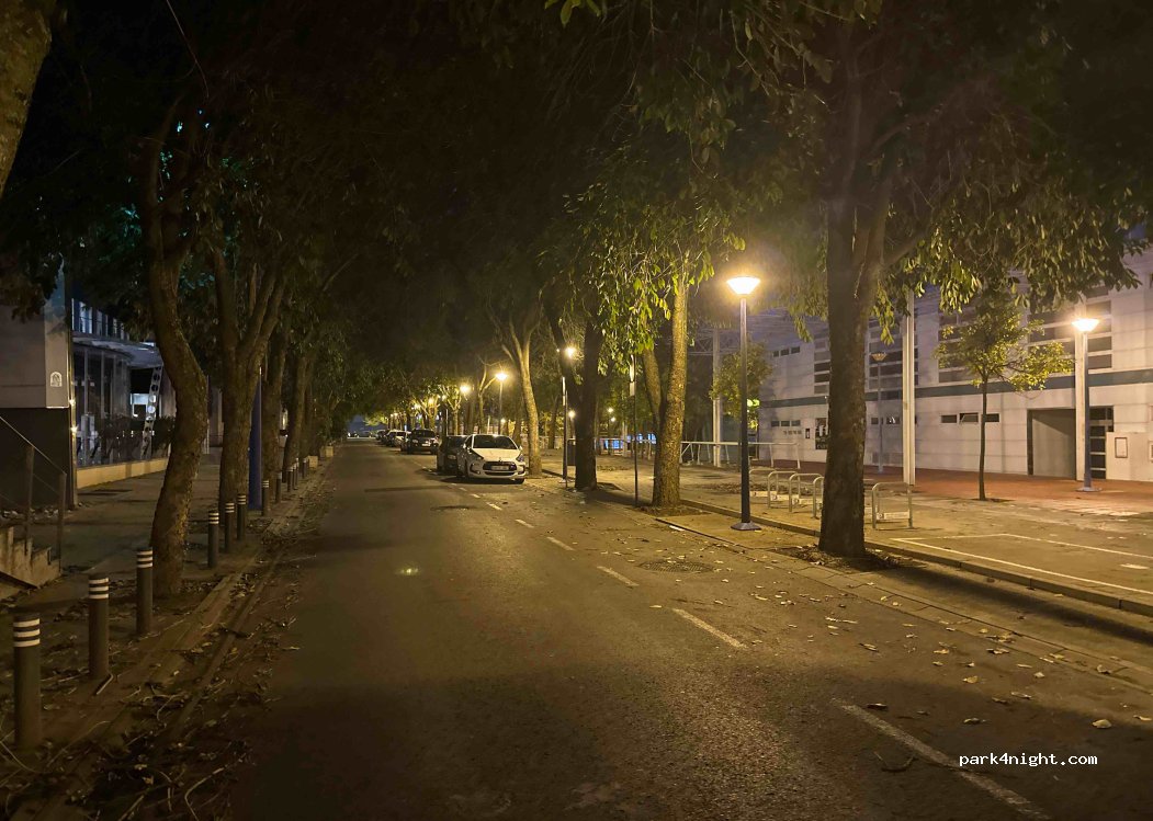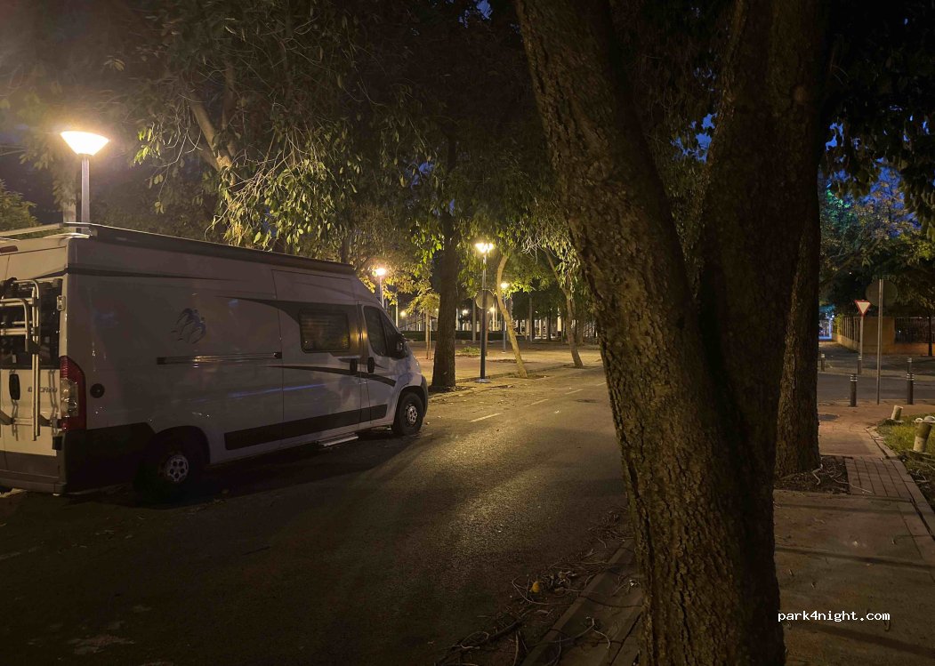 PCT Cartuja es un parque científico y tecnológico que se cierra de noche y vigilado por seguridad privada que te advierte que no está permitida la pernocta y además es una zona de bajas emisiones con restricciones de acceso