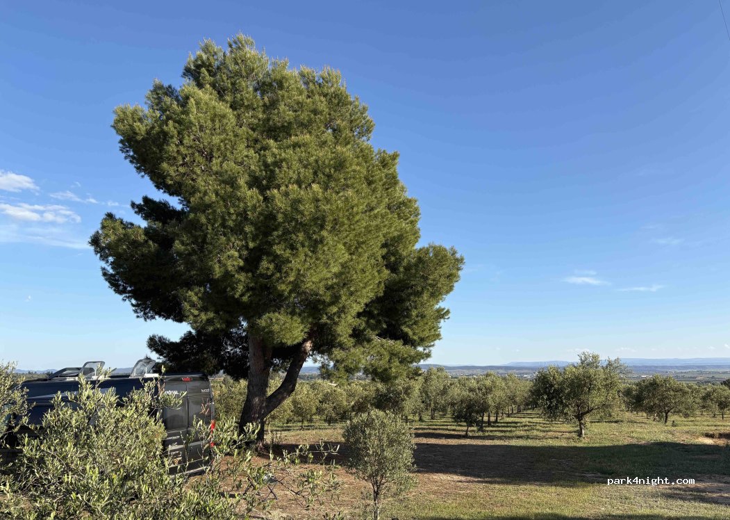 Gratis plek! echt midden in de boomgaard met genoeg schaduw, wind en mooie vergezichten. Natuurlijk een proeverij gedaan en de bekroonde olijfolie gekocht! Hier komen wij terug! Let op: de plek heeft verder geen voorzieningen.