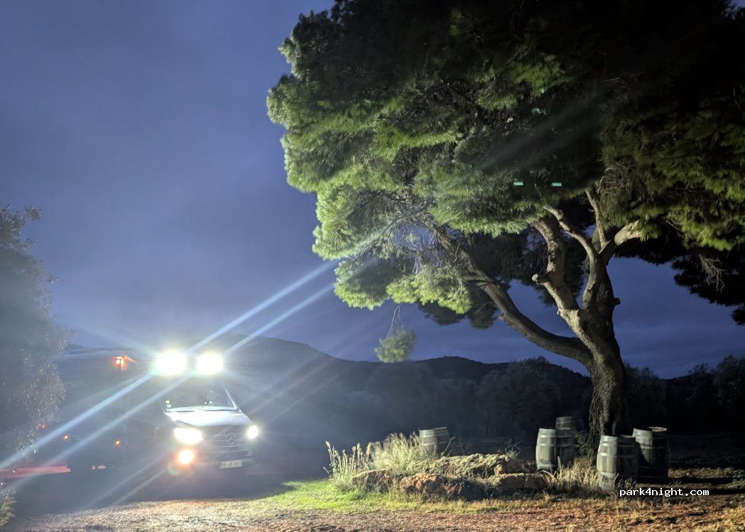 Wer Olivenöl kauft oder an einer Tour teilnimmt, kann auf dem Land übernachten. Bitte kontaktieren Sie den Anbieter vorab, um eine Wegbeschreibung zu erhalten, da die GPS-Navigation oft zu schwierigen Wegen führt. Hunde sind erlaubt, müssen aber an der Leine geführt werden.