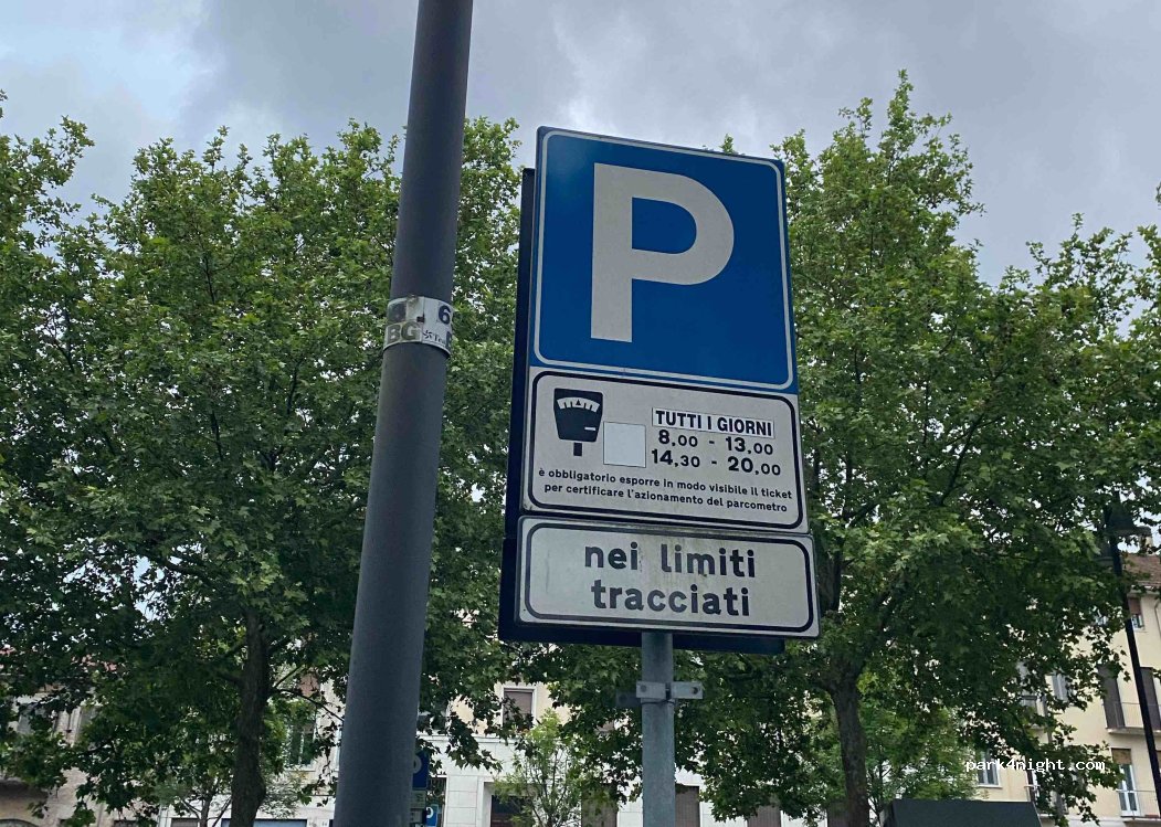 Parcheggio a pagamento durante il giorno. Gratuito di notte. Sicuro e comodo per visitare la città.