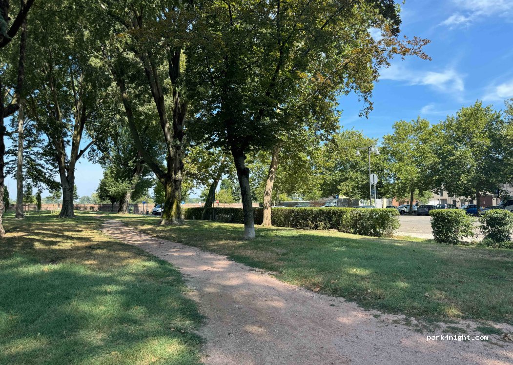 volendo ci sono tre posti con parcheggio strisce bianche, ottima posizione, nel parco c'è un area cani e buon ristorante a buon prezzo a cento metri dal parcheggio. Il centro si trova a 5 minuti a piedi.