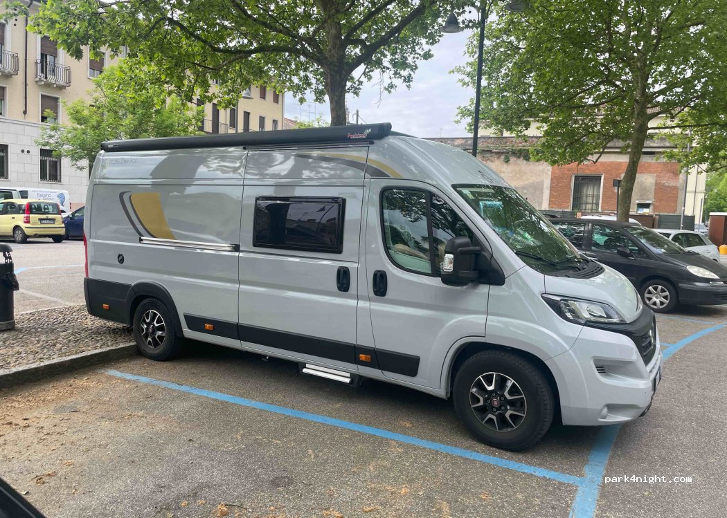 Excellent spot pour une excellente nuit pour une excellente halte entre Nice et Venise pour une excellente balade urbaine à pied depuis la place de parking (prix abordable à +/- 1€/h) … parc ouvert 24h/24h et place ombragée pour l’été … nous étions en plein mois d’Aout.